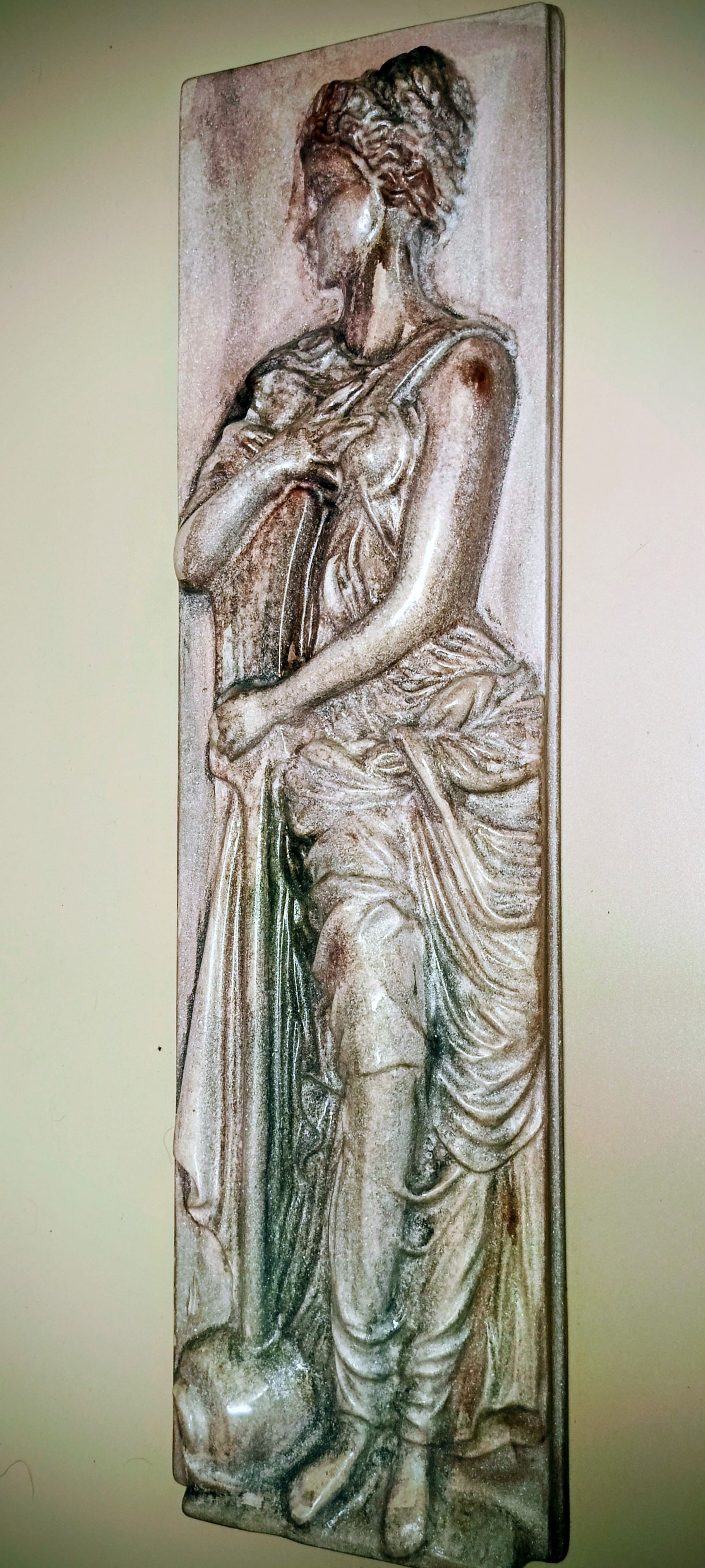 Откройте для себя вечную красоту и гармонию с нашим эксклюзивным гипсовым панно, воплощающим идеал античной грации. Это высокорельефное изображение величественной женской фигуры, облаченной в струящиеся драпировки, передает динамику и пластичность классической скульптуры. Каждая складка ткани, изгиб тела и выразительное положение рук проработаны с ювелирной точностью, создавая ощущение живого движения и глубины.