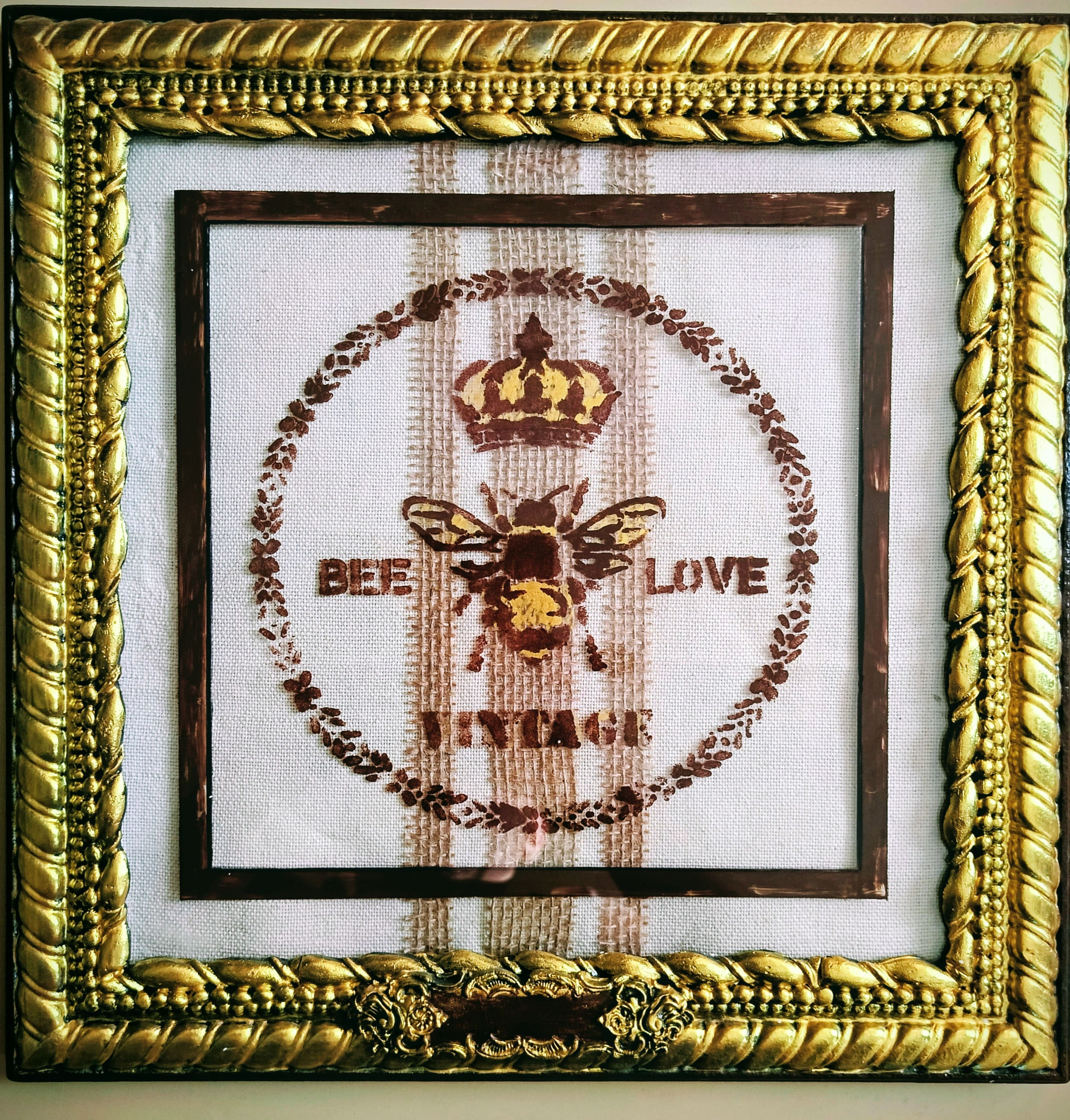 Изысканное Гипсовое Панно "BEE LOVE VINTAGE": Очарование Старины, Символы Роскоши и Любви в Ручной Работе